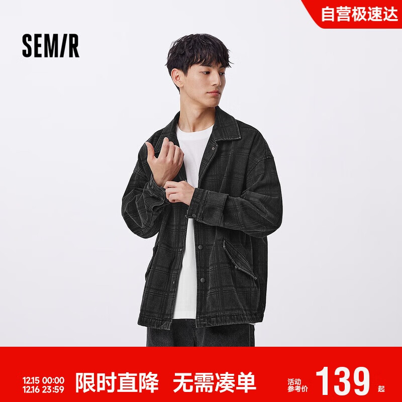 森馬(Semir)森柔牛仔|夾克男裝設計感格子牛仔外套寬松秋季上衣103524108103