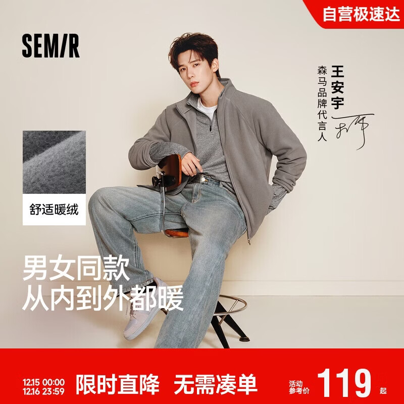 森馬(Semir)夾克男冬抗靜電外套搖粒絨情侶上衣109724108203